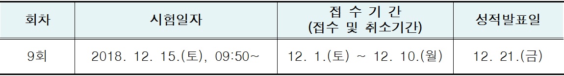 1. 시험일시 : 2018년 12월 15일(토), 오전 (09:50~12:00)